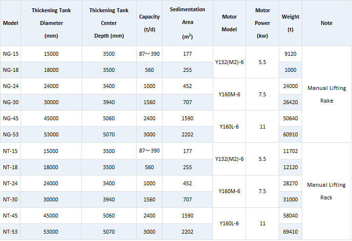 This thickener consists of round thickener and harrow scraping machine, the solid particles suspend in thickener settling by gravity, the pulp in the upper turn into clean water, so that the separation can be realized. Slime that sediment in the bottom of the thickener is discharged by the harrow scrapping continuously, and clean overflow from the upside.