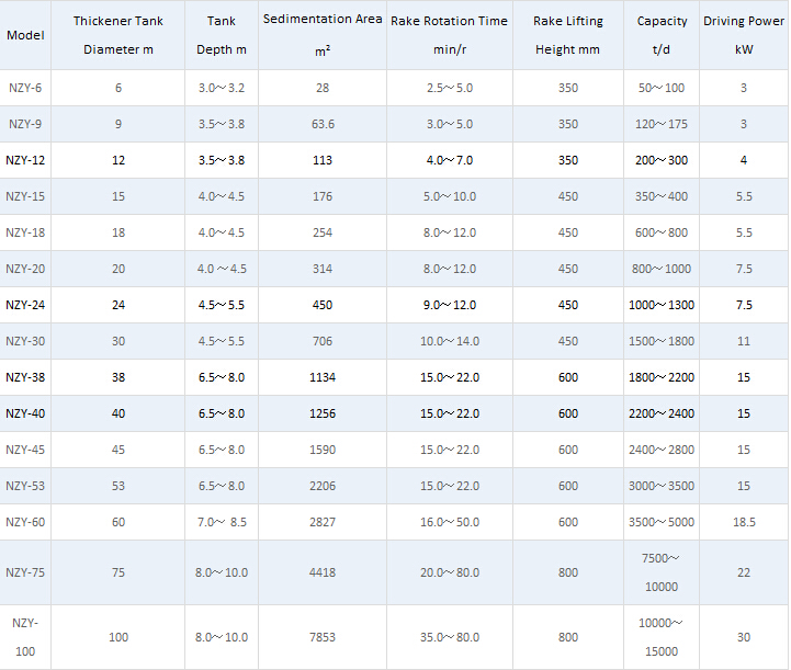Hydraulic motor drive center thickener is mainly composed of driving device, tray, dosing device, feeding pipe, fixed cylinder, shaft, scraper, rake, suspenders, electronic control device, hydraulic station,etc.