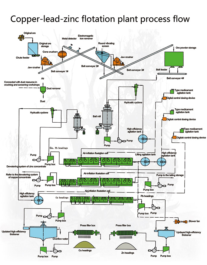 A Zinc-lead-zinc dressing plant in northwest of China, Xinhai adopted parts preferential flotation based on technology advantages of preferential and mixed flotation and combined with the ore characteristics. This plant obtained good beneficiation indexes: lead concentrate grade reached 66.52%; the recovery rate was 88.5%.